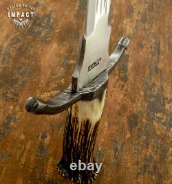Travaux et ensuite passer à vos générations futures en tant que pièce héritage. Le couteau est accompagné d'un Certificat d'Authenticité, Impact à Vie.La lame a bénéficié d'un excellent traitement thermique et possède une incroyable capacité de maintien et de rétention du fil. La lame de mm d'épaisseur a de fantastiques finitions à la main sur les deux côtés et les côtés supérieurs sont aiguisés à un bord tranchant. La longueur totale de ce couteau est de 30,30 et la longueur de la lame est de 23,75 pouces. La poignée solide et magnifique est faite de superbes bois de cerf. Le couteau est complété par une garde en damas forgée à la main.